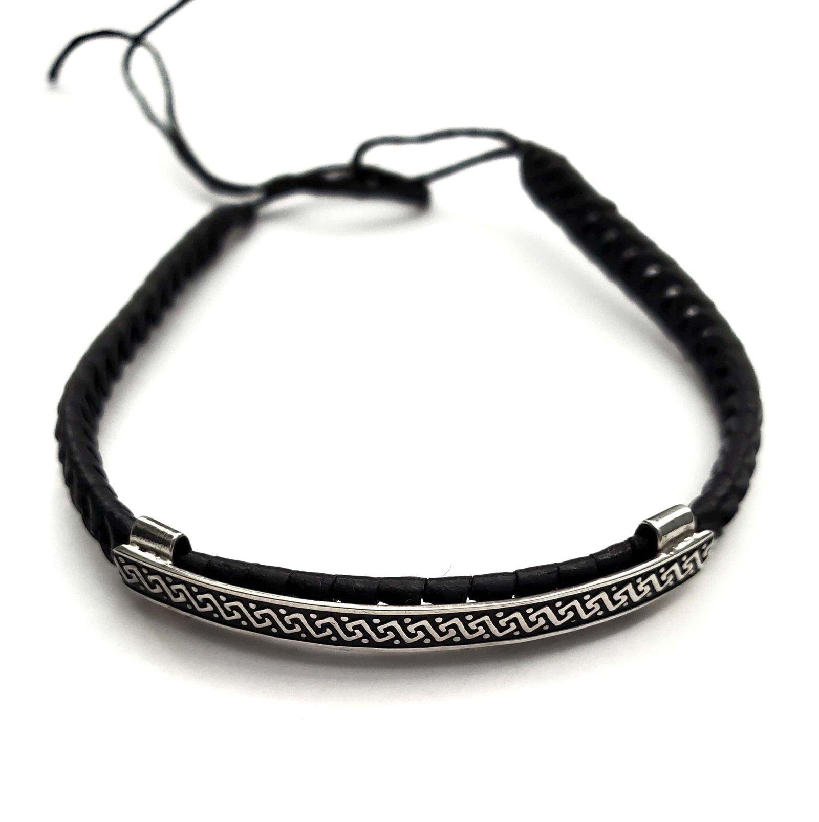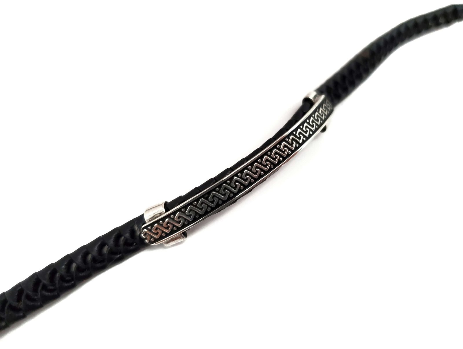 Unisex .925 Mexican Sterling Silver Bracelet with Authentic Leather